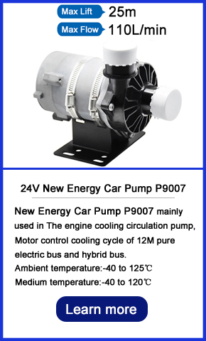 The 24V New Energy Car Pump P9007 is a specialized electric water pump designed for specific applications in the automotive industry. It is primarily utilized as an engine cooling circulation pump and for motor control cooling cycles in 12M pure electric buses and hybrid buses. With a maximum lift of 25m and a maximum flow rate of 110L/min, it is engineered to meet the high - demand cooling requirements of these large - scale vehicles. The pump can operate effectively in ambient temperatures ranging from - 40 to 125°C and medium temperatures from - 40 to 120°C. Learn more about its features and performance to understand how it contributes to the efficient operation of new energy vehicles.